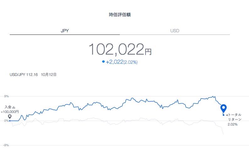 フォリオの結果は残念ながらどんどん下落していっています。テーマ型のロボアドバイザーはテーマ選びを間違えてしまうとこうなってしまいます。